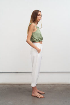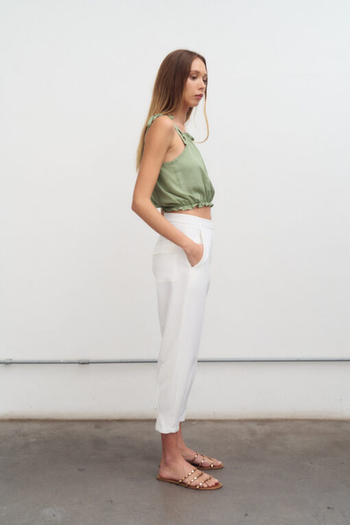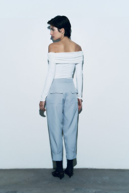 Pantalón chupín globo de tiro alto confeccionado en sastrero de calidad premium. Posee bolsillos laterales y bolsillos aplicados con tapa en espalda. Las prendas globo son tendencia esta temporada.