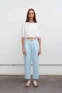 Pantalón chupín de lino y tiro alto con botamanga