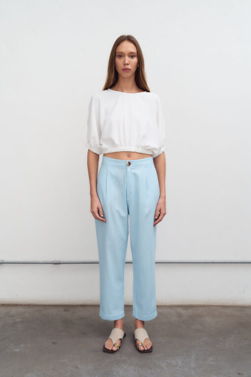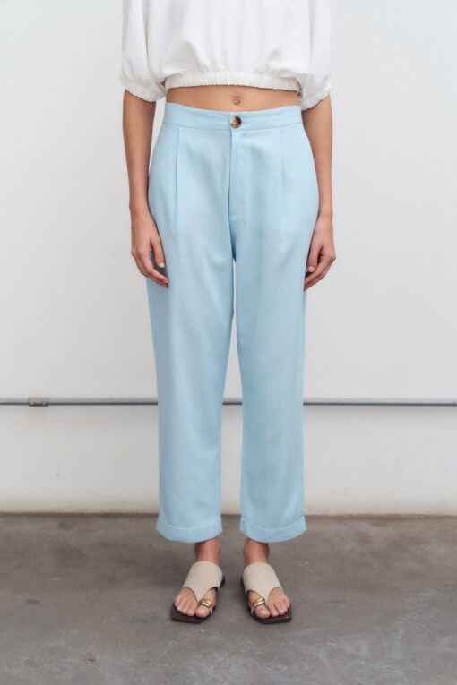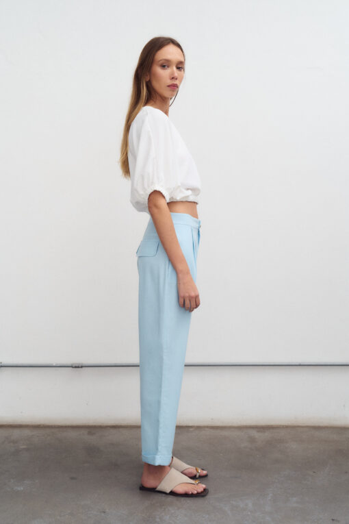 Pantalón chupín de lino y tiro alto con botamanga