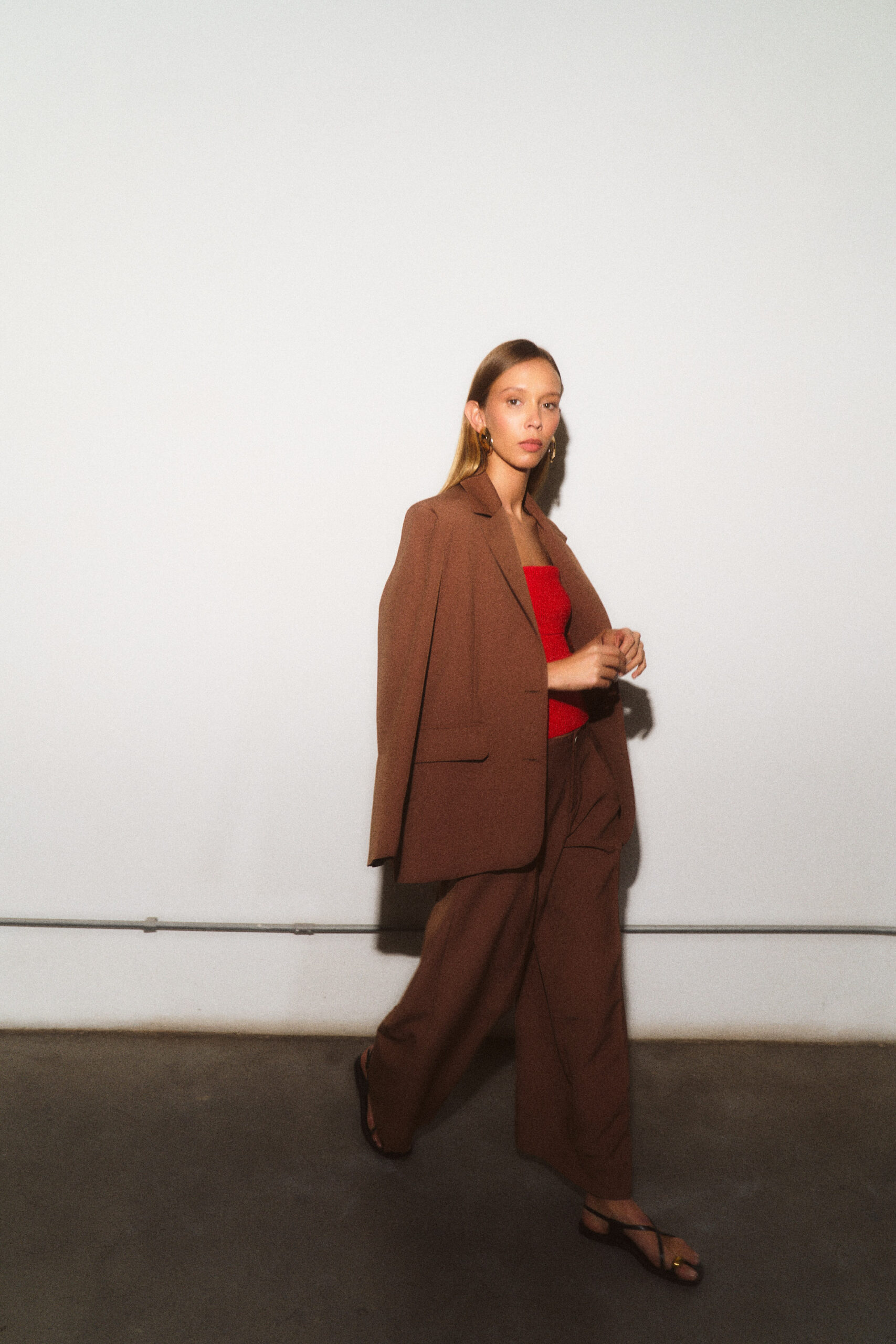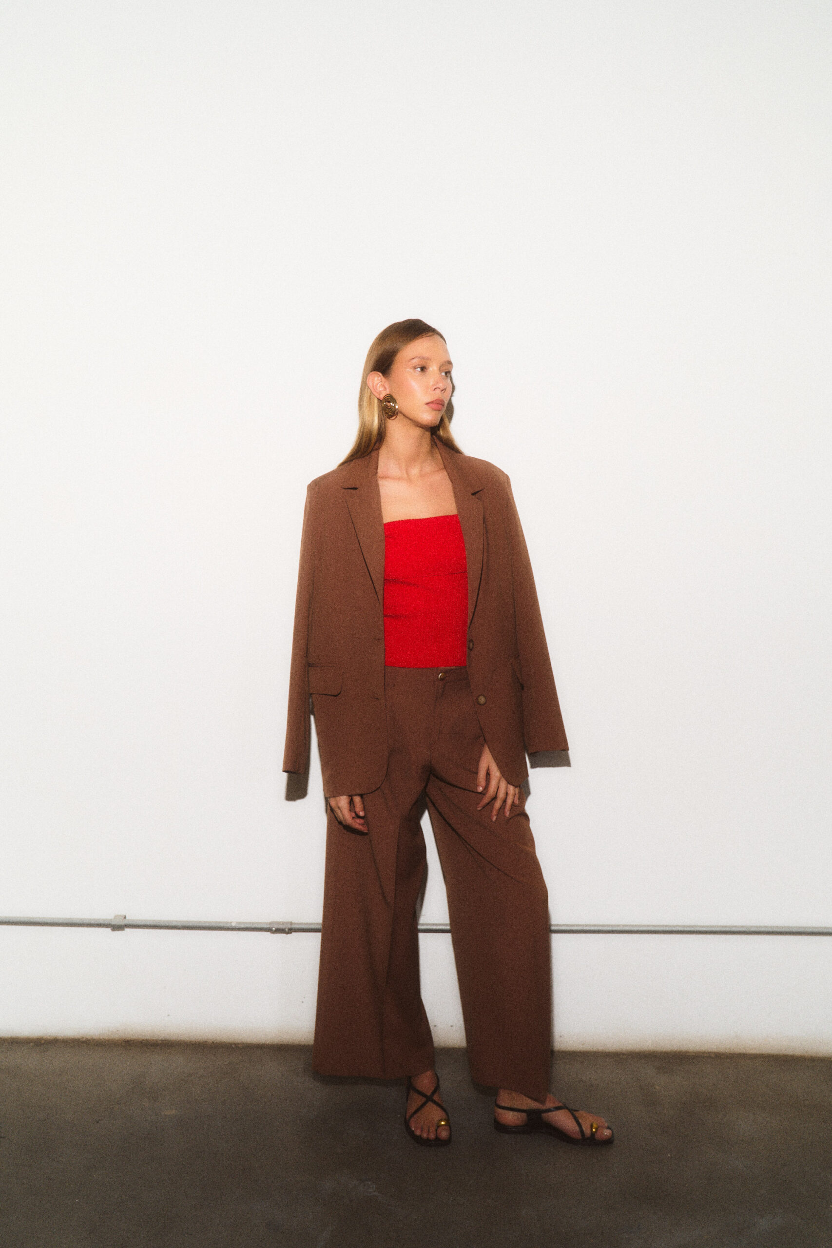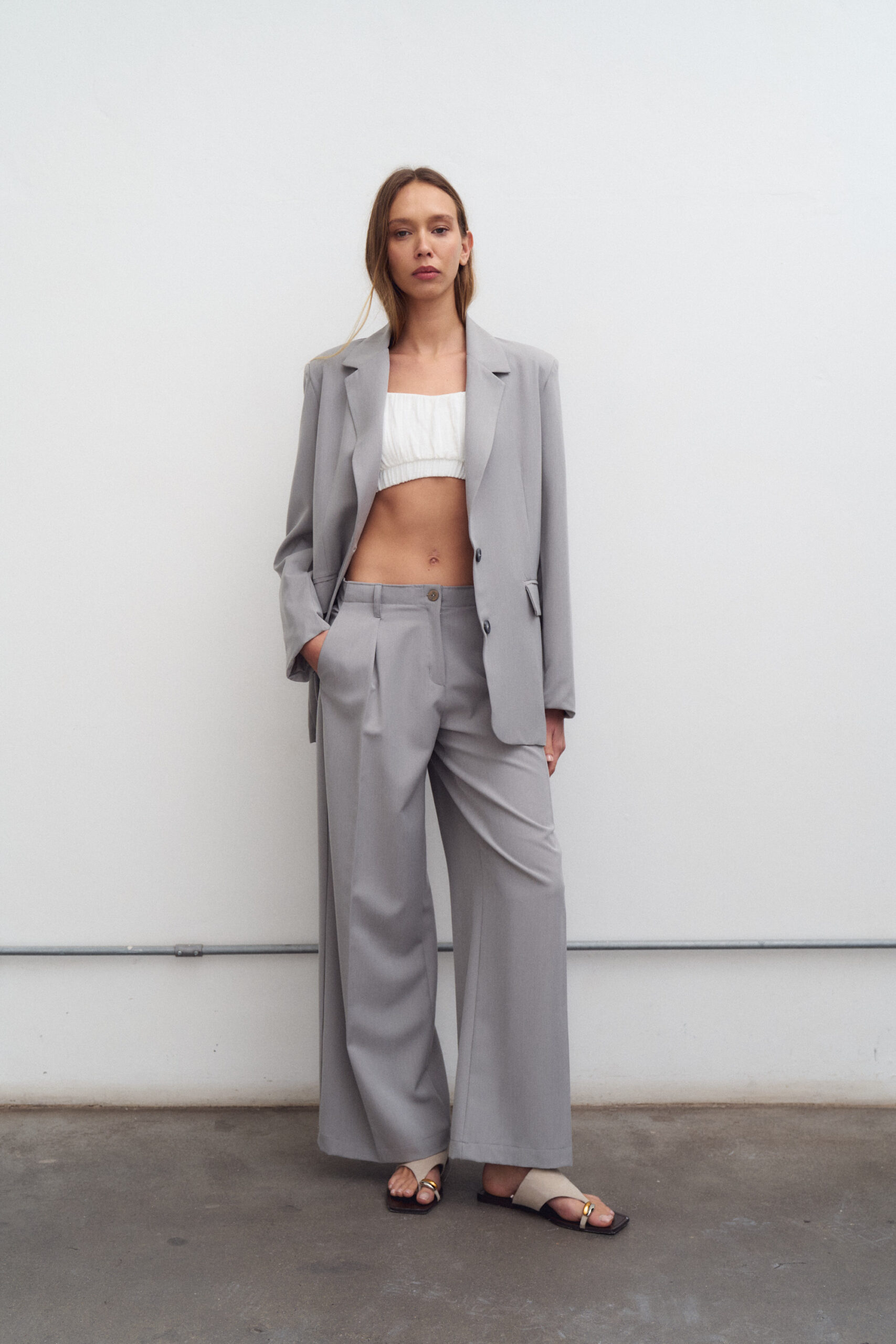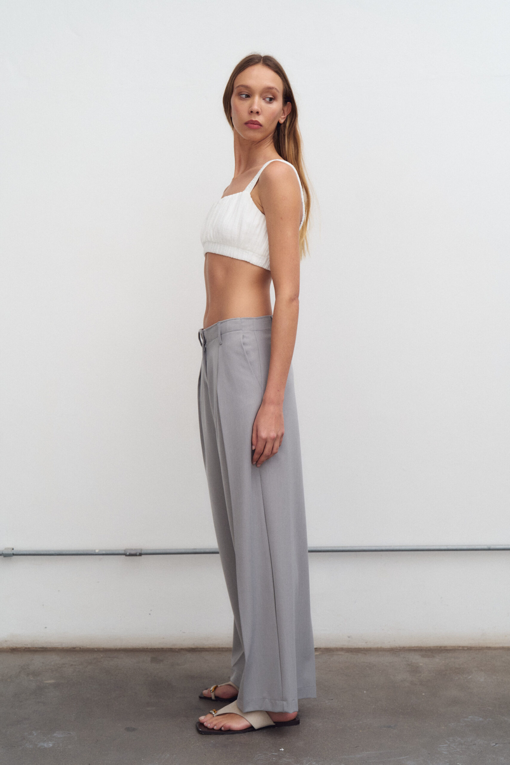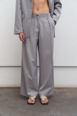 Pantalón de tiro medio y pierna ancha. Confeccionado en sastrero de calidad premium.
