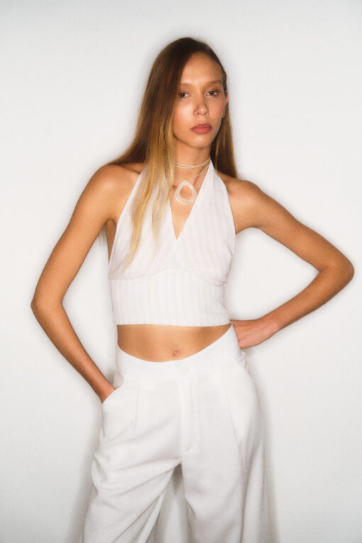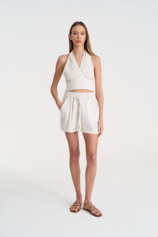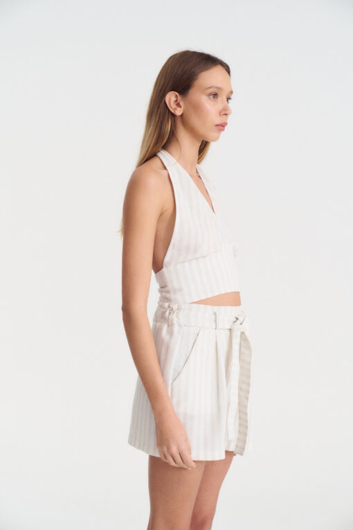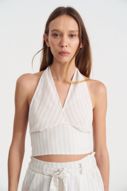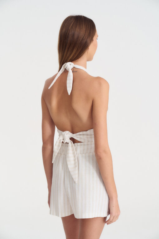Top de lino rayado con lazo para atar en cuello y espalda