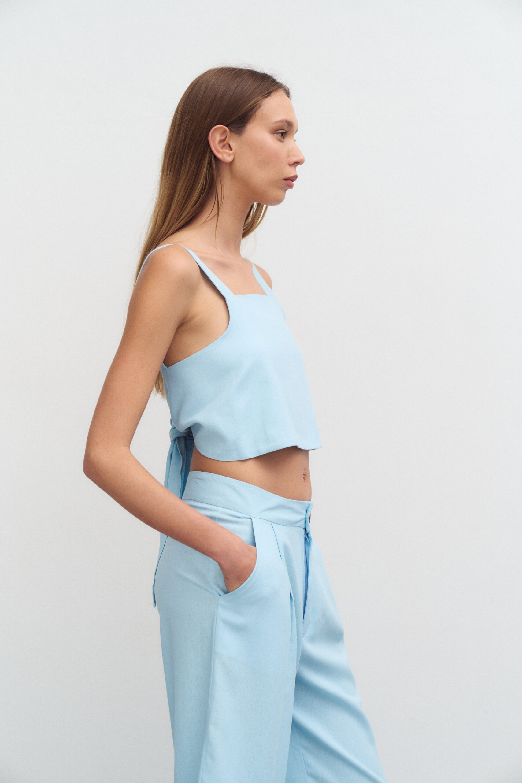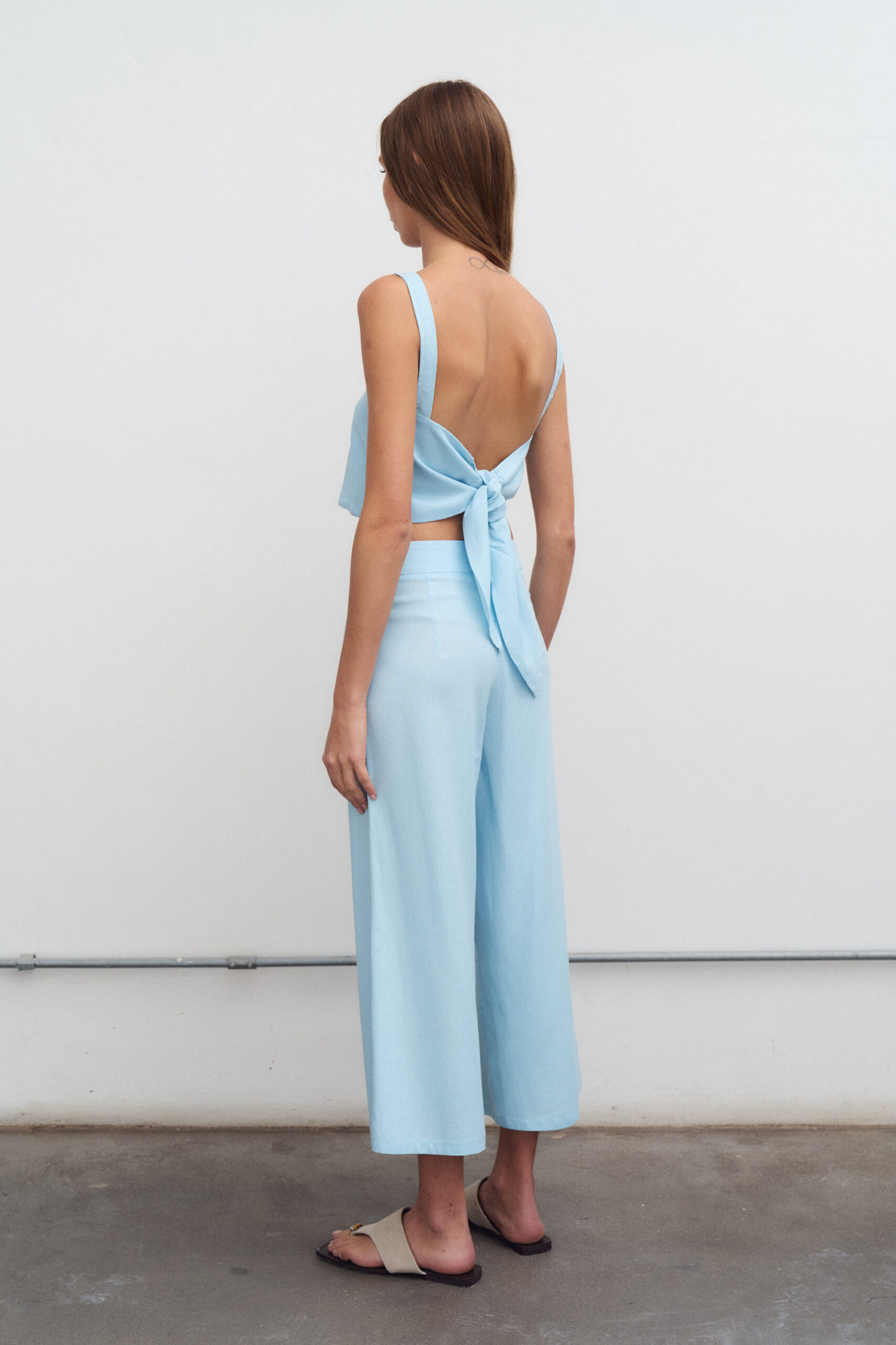 Top de lino con escote cuadrado y lazo para atar en espalda