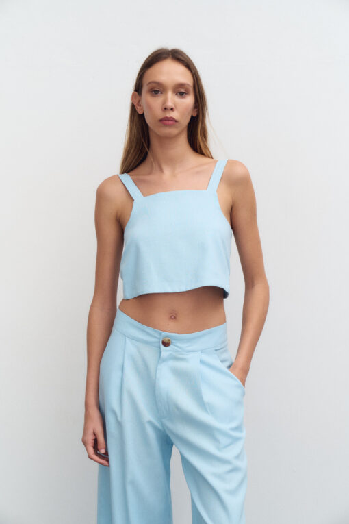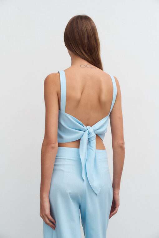 Top de lino con escote cuadrado y lazo para atar en espalda